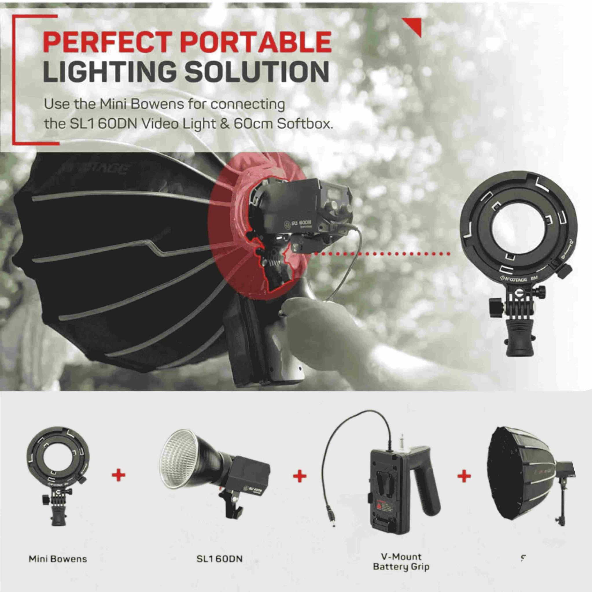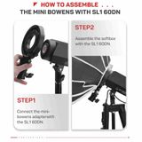 Ngàm chuyển đổi Adapter từ Mini Bowen hay Bowen mang đến nhiều linh hoạt hơn trong việc setup ánh sáng.Thiết kế bền bỉ, chắc chắn hỗ trợ gắn softbox lớn dễ dàng hơn thay thế được một chân đèn mới.