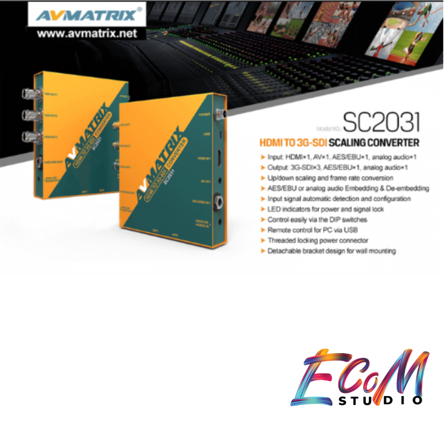 SC2031 là một bộ chuyển đổi tín hiệu với tính năng scaling, được thiết kế để chuyển đổi tín hiệu từ HDMI sang 3G-SDI, sử dụng trong nhiều môi trường và ứng dụng khác nhau, từ sản xuất truyền hình, quay phim, đến các sự kiện trực tiếp và giáo dục
