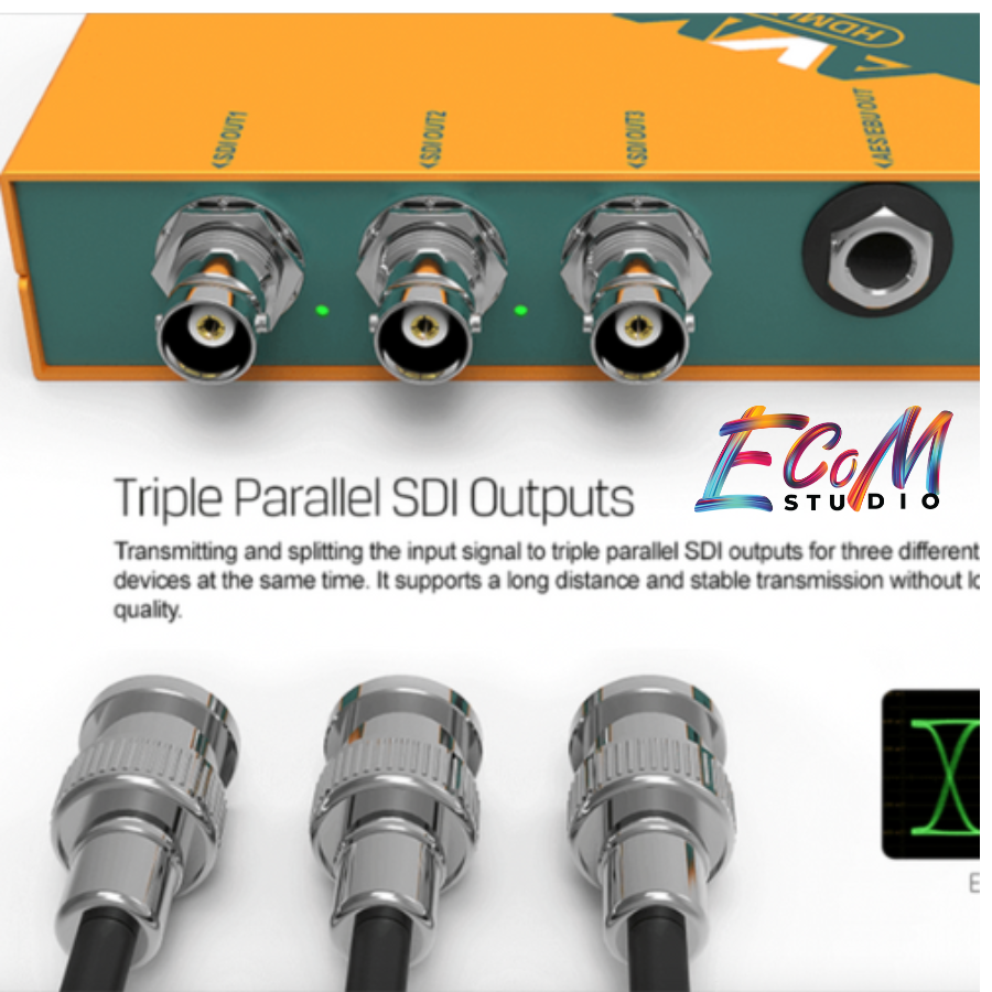 1. Chuyển đổi từ HDMI sang 3G-SDI: SC2031 cho phép người dùng chuyển đổi tín hiệu từ HDMI (phổ biến trong các thiết bị tiêu dùng và một số thiết bị chuyên nghiệp) sang 3G-SDI, một chuẩn tín hiệu chất lượng cao được sử dụng rộng rãi trong ngành công nghiệp truyền thông. SC2031 là một lựa chọn lý tưởng cho các chuyên gia trong ngành truyền thông và sản xuất video, cung cấp tính linh hoạt, chất lượng tín hiệu cao và độ tin cậy trong việc chuyển đổi tín hiệu từ HDMI sang 3G-SDI để đáp ứng các yêu cầu khắt khe của các ứng dụng sản xuất truyền hình, quay phim và tổ chức sự kiện trực tiếp.