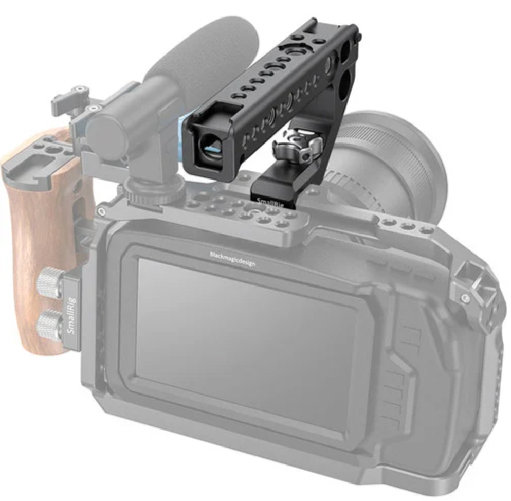 2. Báng tay cầm tích hợp: Cage đi kèm với một báng tay cầm tích hợp, cung cấp một cách thuận tiện và ổn định để bạn có thể cầm máy quay trong quá trình quay.