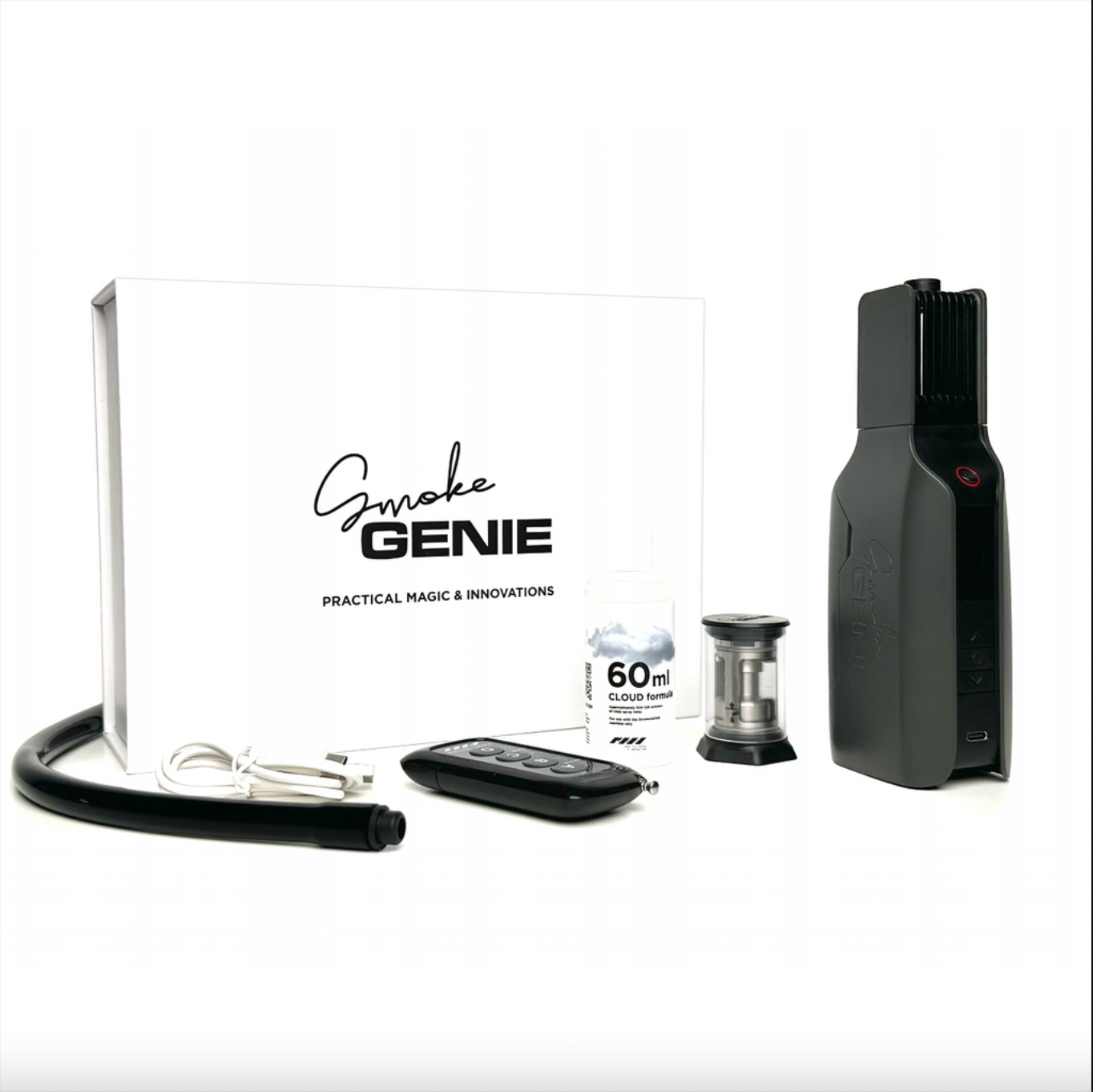 3. Điều khiển từ Xa: Smoke Genie thường đi kèm với một bộ điều khiển từ xa, cho phép bạn dễ dàng điều chỉnh và kiểm soát hiệu ứng khói từ xa, mà không cần phải tiếp xúc trực tiếp với thiết bị.